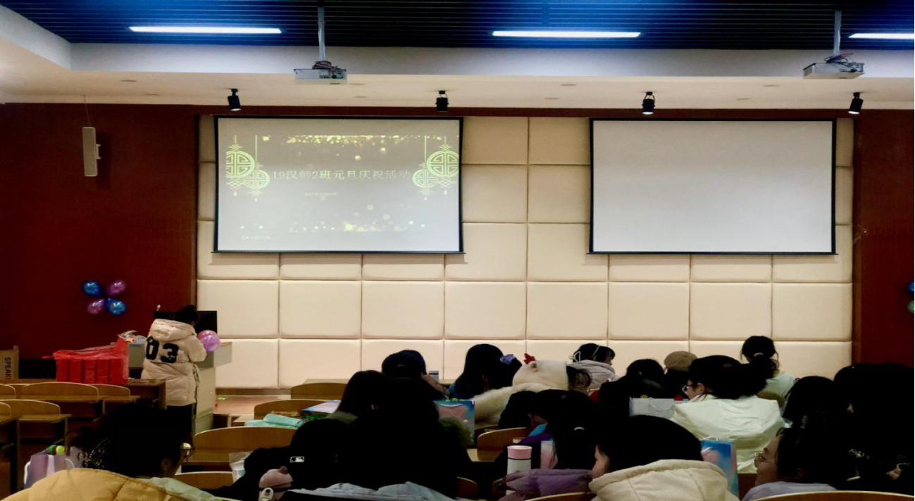 2019级汉语言文学(师范)二班紧追其后,于2020年12月30日在特教楼北配201举办了2021年“辞旧迎新,笑看明天”元旦庆祝活动。活动主要分为两个部分,观影环节和游戏环节,每个环节有序进行。在观影时,同学们此起彼伏的笑声与掌声在教室中回荡。同时设有抽奖环节,整场活动惊喜不断。